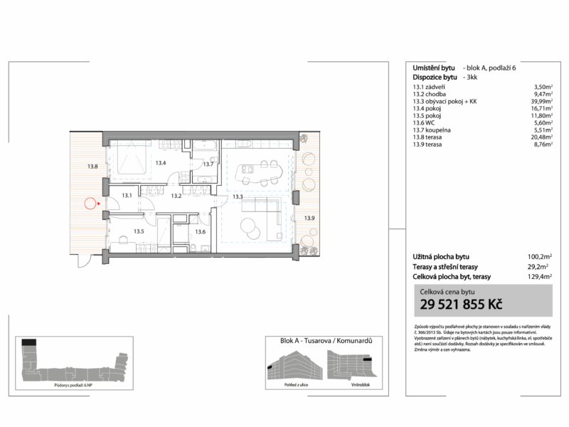 Byt A613 - prodejní cena: 29.521.855 CZK + parkovací stání 1.500.000 CZK ...